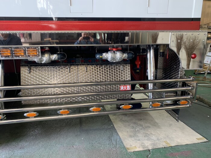 8tカーゴ車にFパイプ & マーカーランプ追加。結構 難しい作業でした。