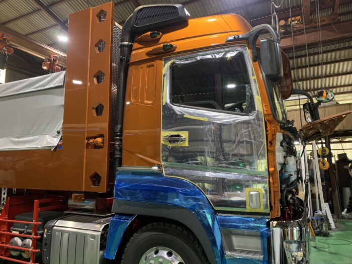 大型ダンプ ドアメッキ交換 架装仕上げ