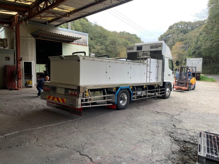 4トン活魚車の載せ替え作業と架装一式を行ないました。